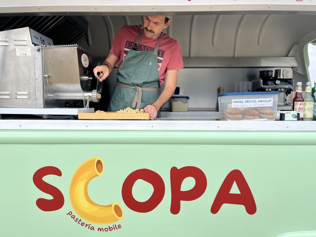 Pour donner vie à leur projet, Adrien et Chloé cherchaient un food truck vintage, pour le charme, et assez petit pour pouvoir se faufiler partout. L’Estafette cochait toutes les cases. Mais la réalité a vite rattrapé le rêve : malgré un aménagement confié à une société spécialisée, les pannes se sont enchaînées, jusqu’au pot d’échappement qui se décroche en pleine route ! Après bien des péripéties, l’Estafette roule enfin “correctement” — et désormais, elle est prête à emmener Scopa Food Truck à la rencontre de tous les gourmands.